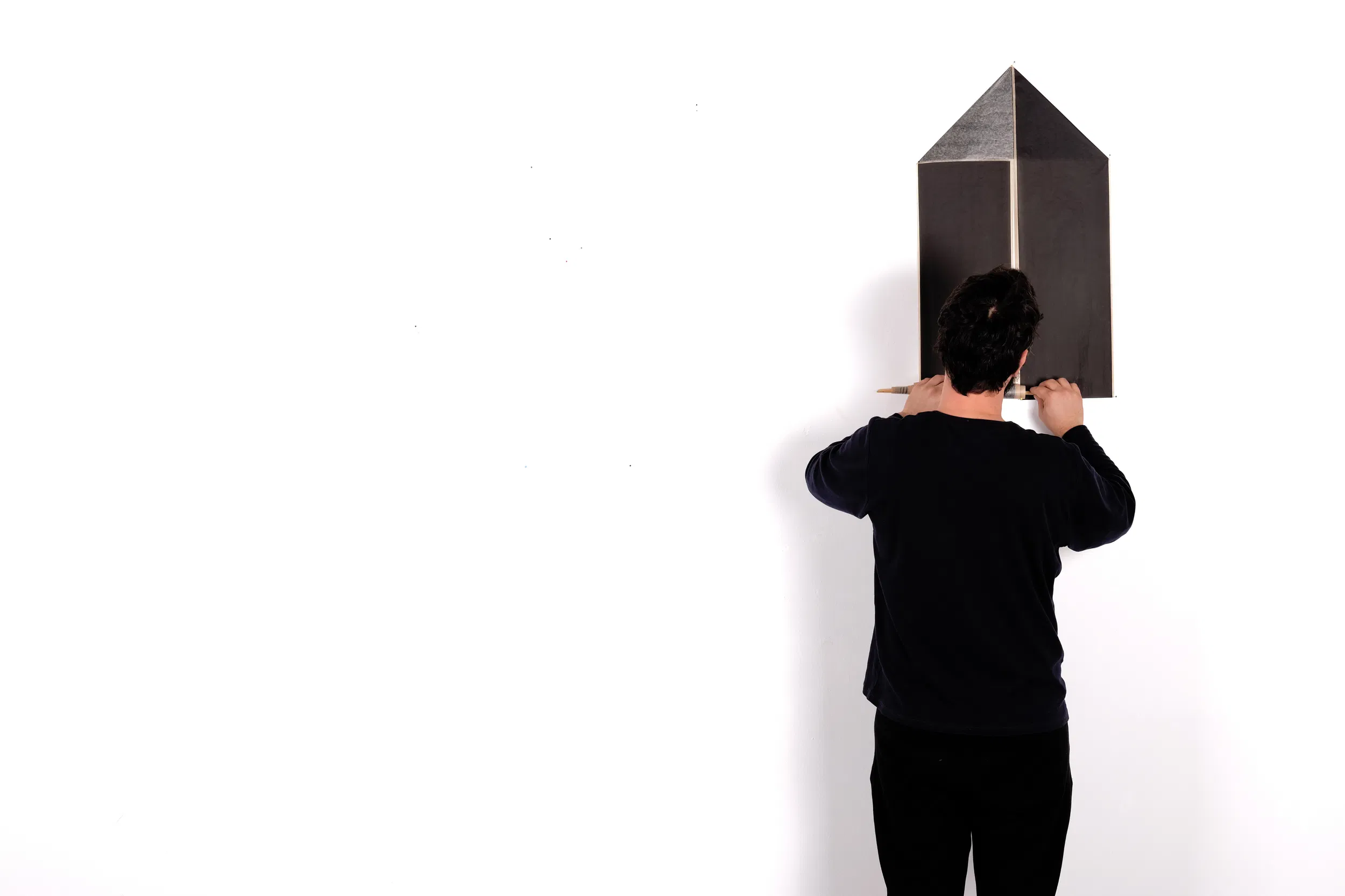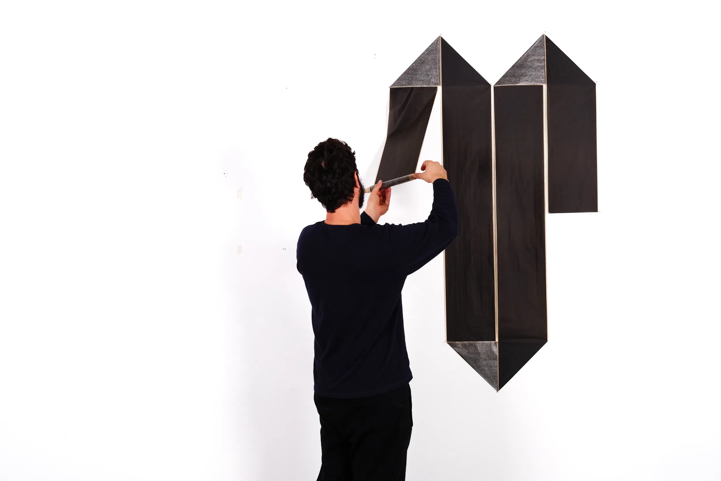As lajes de ardósia, a terceira matéria nesta instalação, foram recolhidas neste período, aquando da